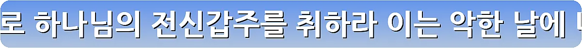 이런 현실 앞에서 하나님의 전신갑주는 단순한 종교적 상징이 아니라, 실제로 우리 삶을 보호하고 승리로 이끄는 실용적 도구가 되는 거예요.